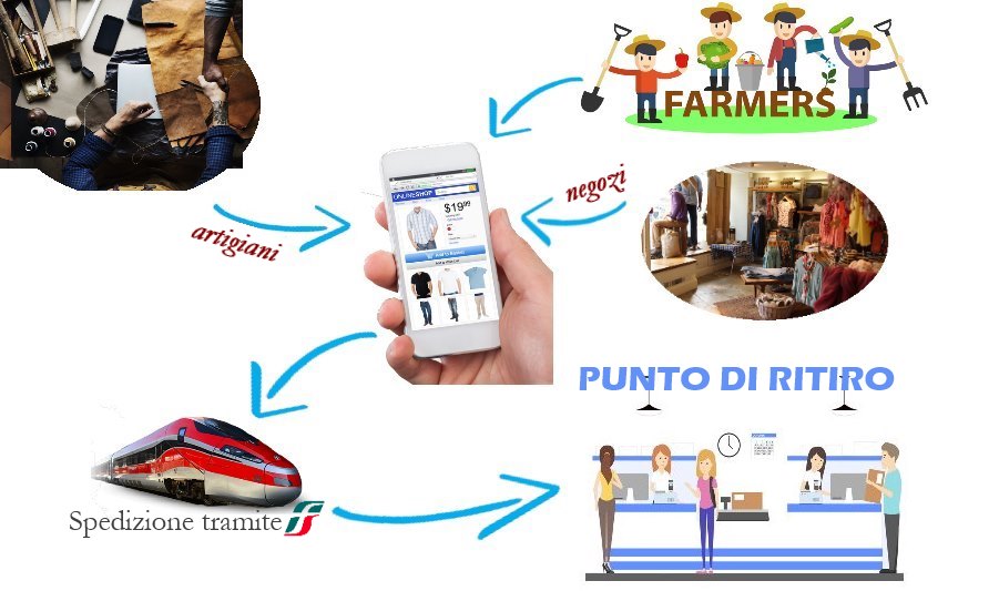 Facciamo un esempio: Un negoziante di Cosenza vende un panettone artigianale al pistacchio ad un cliente di Firenze. Il negoziante consegna il prodotto direttamente in Stazione e se il cliente ritirerà il panettone direttamente presso un punto di ritiro affiliato non pagherà alcuna spesa di spedizione. Altrimenti se preferisce la consegna a domicilio, pagherà al corriere solo il trasporto dalla Stazione fino a casa. Questo sistema potrebbe favorire anche i piccoli produttori agricoli, i quali non avrebbero la necessità di vendere la loro produzione a grossisti o intermediari commerciali.